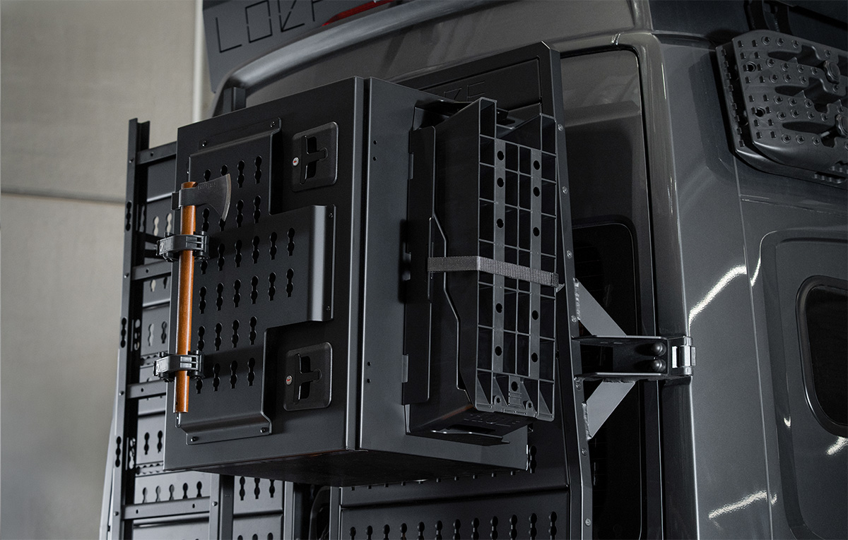 Ziel: Sicherer, externer Transport von Auffahrkeilen, um Schmutz und Feuchtigkeit vom Camp-Alltag aus dem Fahrzeuginnenraum fernzuhalten.